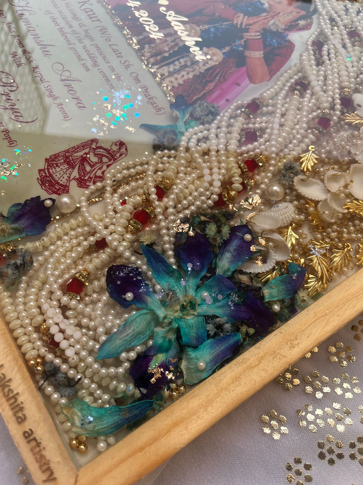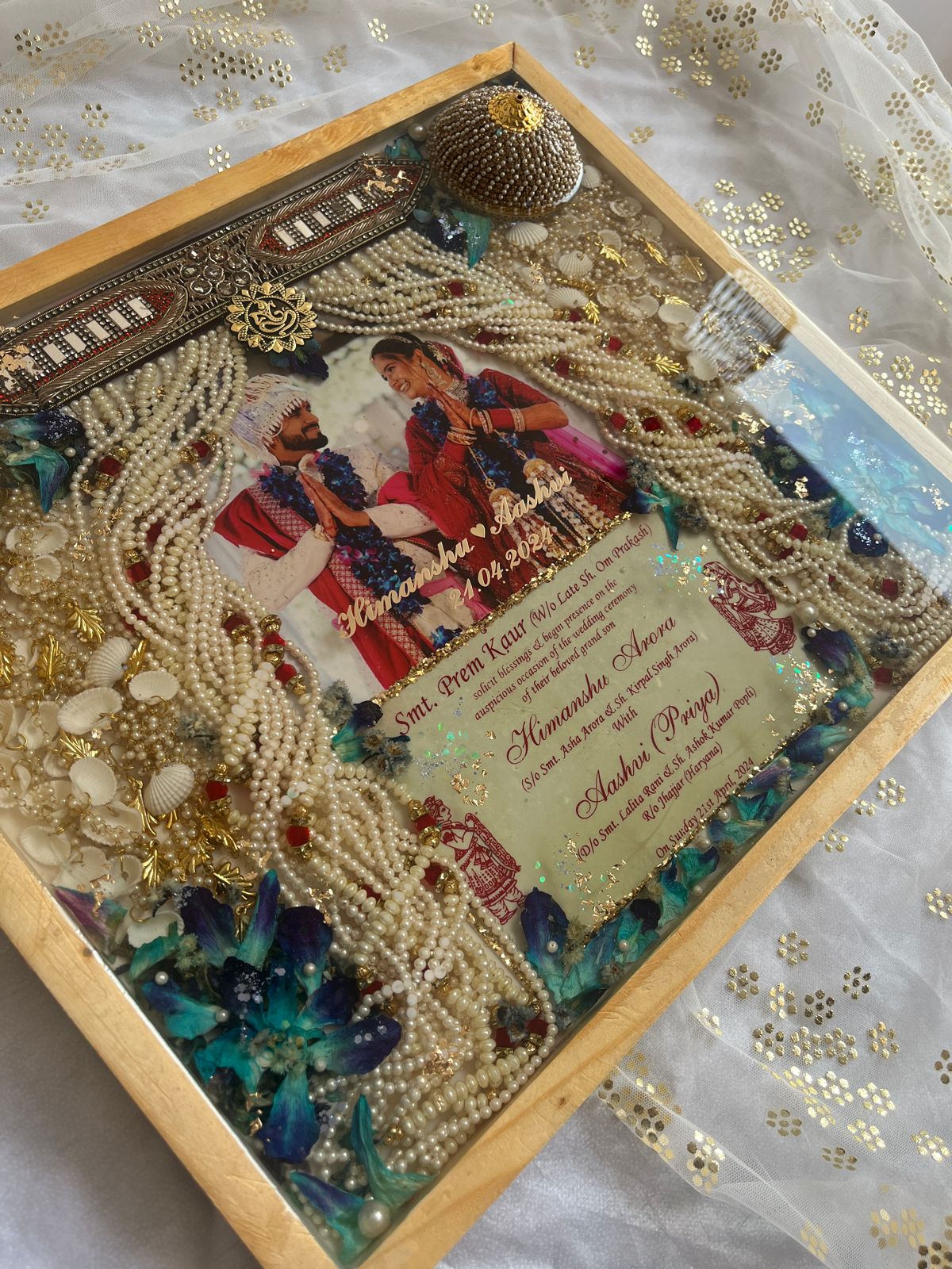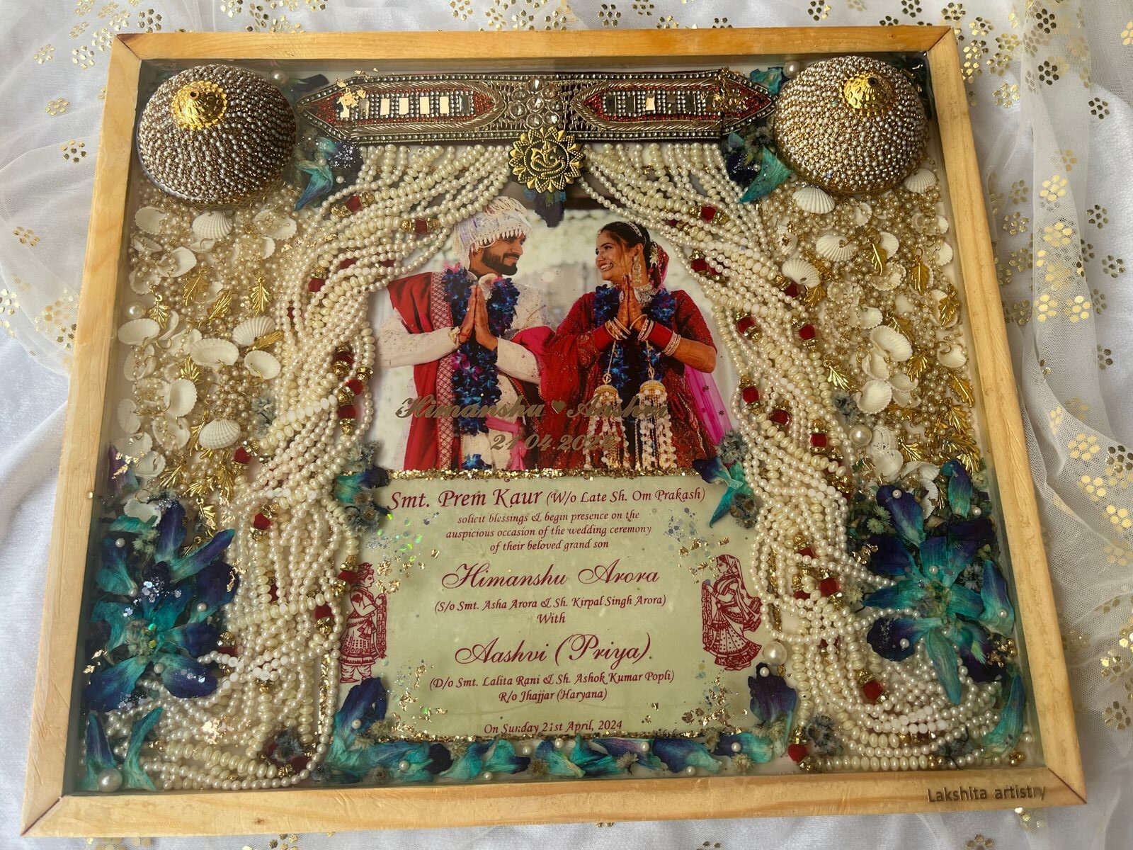 Handmade Varmala frames are exquisite keepsakes that preserve both flowers and memories for life. Featuring intricate Varmala motifs symbolizing eternal love and unity, these frames are crafted with the highest quality materials to ensure durability. Perfect for safeguarding cherished moments and the flowers that accompany them, these frames are designed to last forever, keeping your precious memories beautifully displayed for generations.