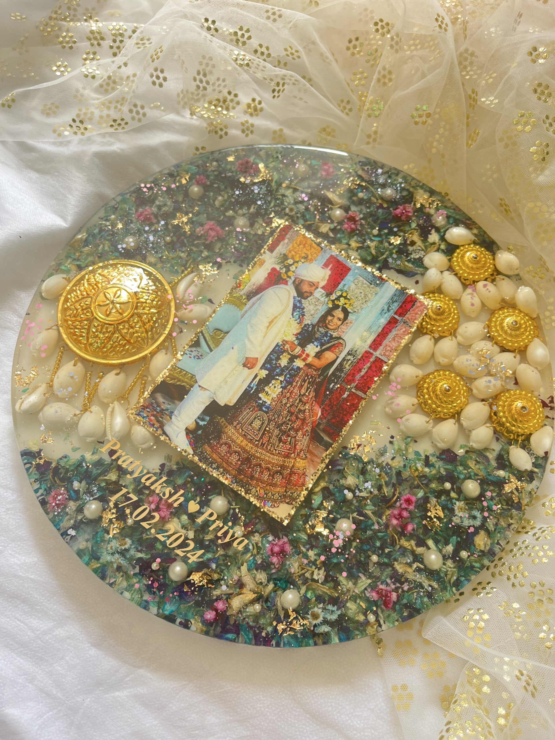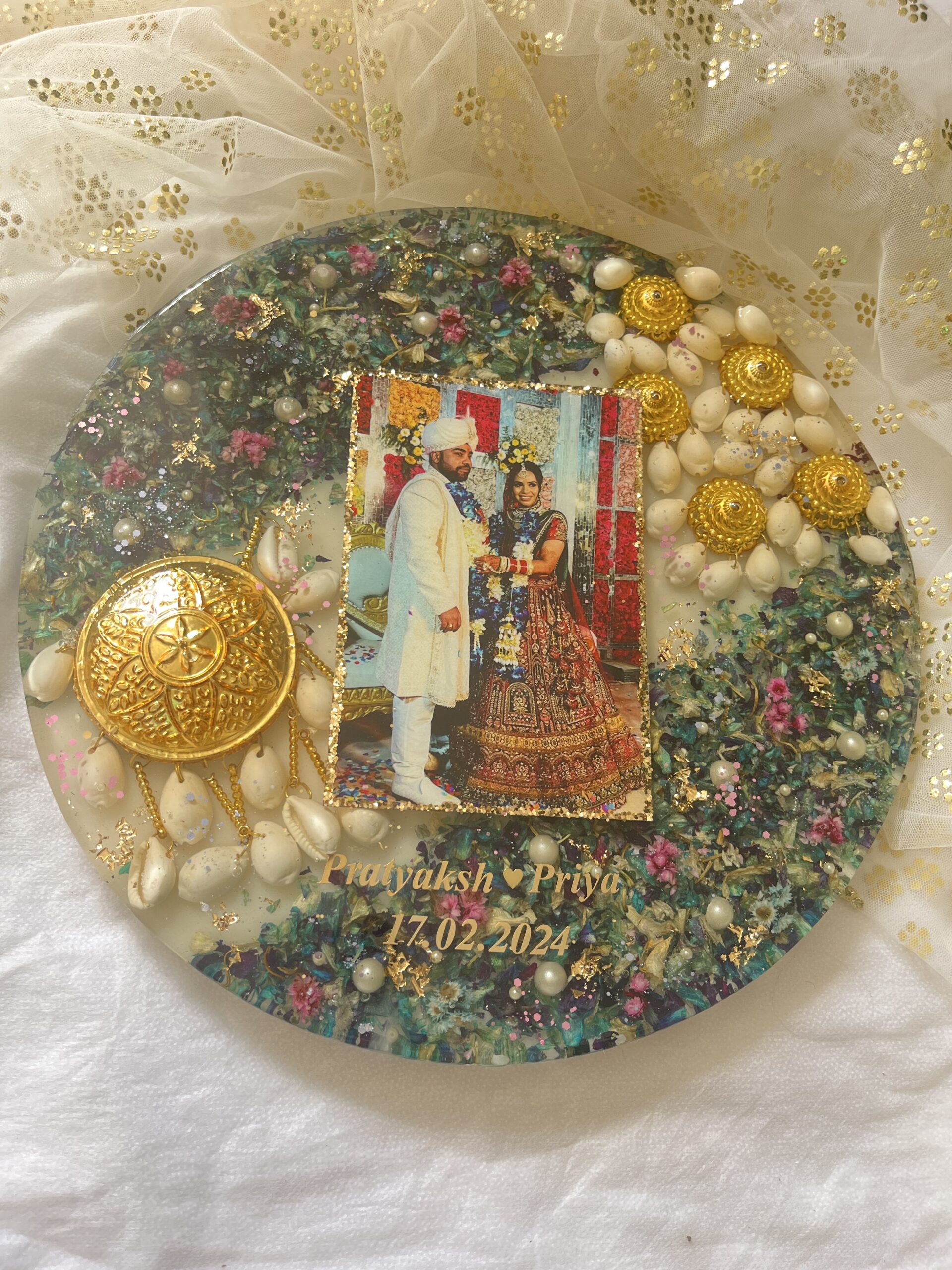 Handmade Varmala frames are exquisite keepsakes that preserve both flowers and memories for life. Featuring intricate Varmala motifs symbolizing eternal love and unity, these frames are crafted with the highest quality materials to ensure durability. Perfect for safeguarding cherished moments and the flowers that accompany them, these frames are designed to last forever, keeping your precious memories beautifully displayed for generations.