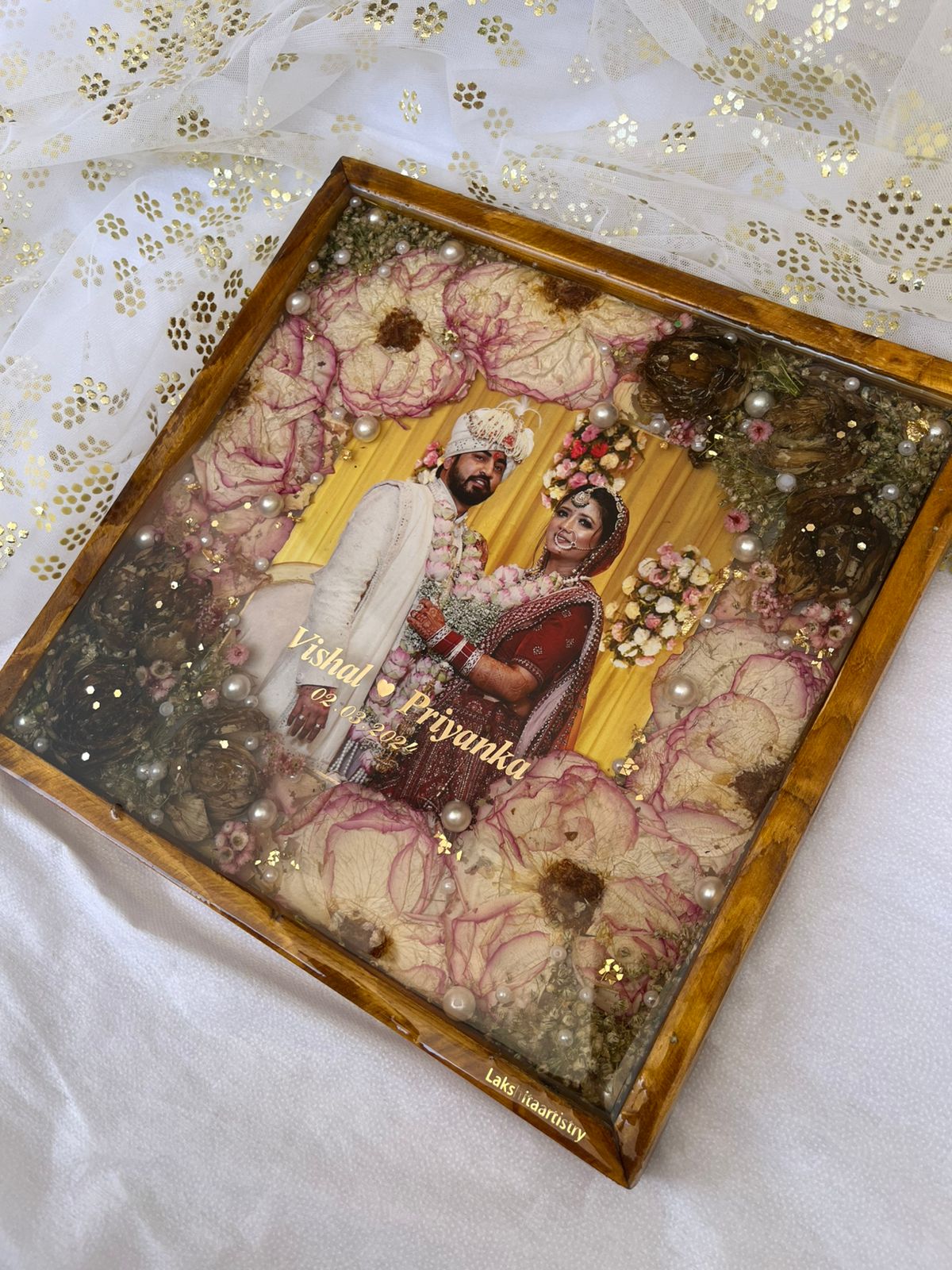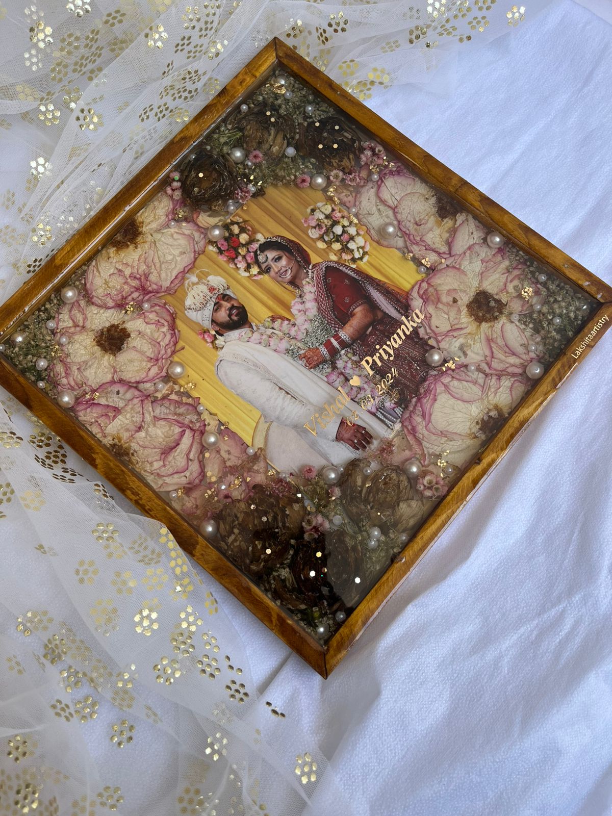 Handmade Varmala frames are exquisite keepsakes that preserve both flowers and memories for life. Featuring intricate Varmala motifs symbolizing eternal love and unity, these frames are crafted with the highest quality materials to ensure durability. Perfect for safeguarding cherished moments and the flowers that accompany them, these frames are designed to last forever, keeping your precious memories beautifully displayed for generations.