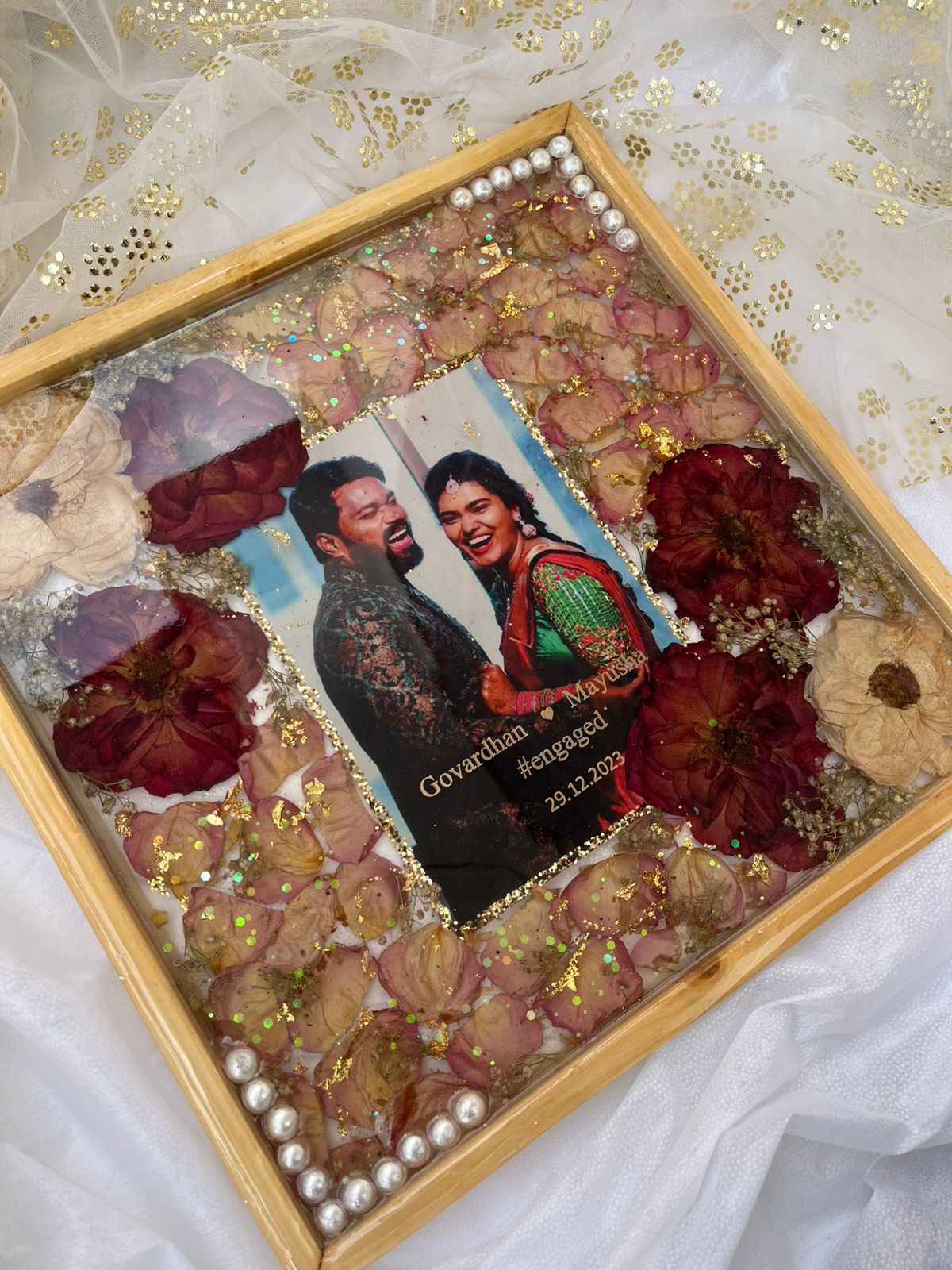 Handmade Varmala frames are exquisite keepsakes that preserve both flowers and memories for life. Featuring intricate Varmala motifs symbolizing eternal love and unity, these frames are crafted with the highest quality materials to ensure durability. Perfect for safeguarding cherished moments and the flowers that accompany them, these frames are designed to last forever, keeping your precious memories beautifully displayed for generations.